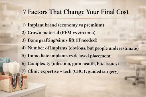 The final cost of implant treatment rarely matches a single number online. Dentists evaluate several clinical variables before creating a treatment plan.