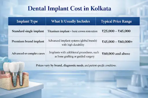 Dental Implant Cost by Type (Kolkata Price Bands)